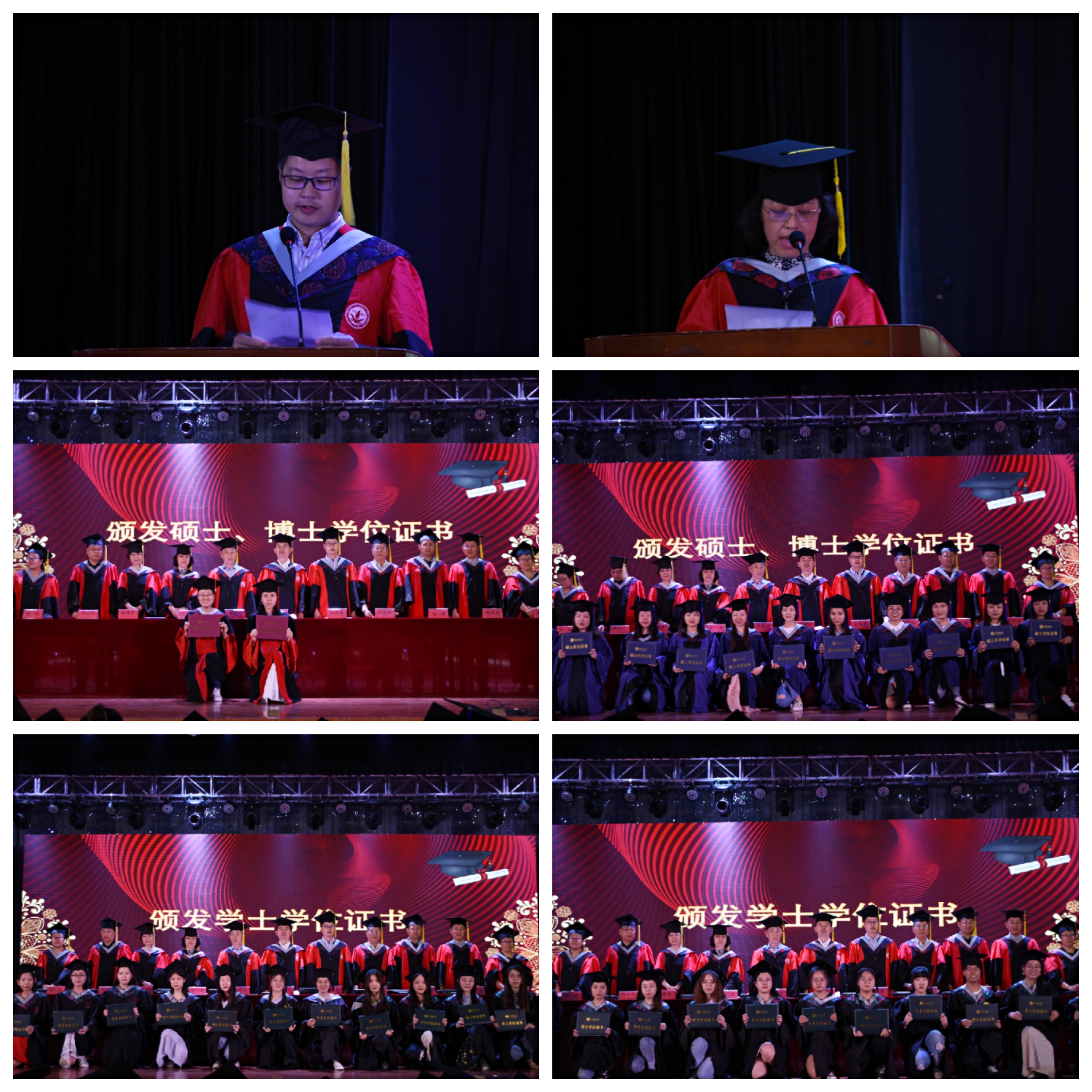 领导和教师代表先后为2019届本科毕业生和研究生毕业生颁发学士学位证书和硕士、博士学位证书。