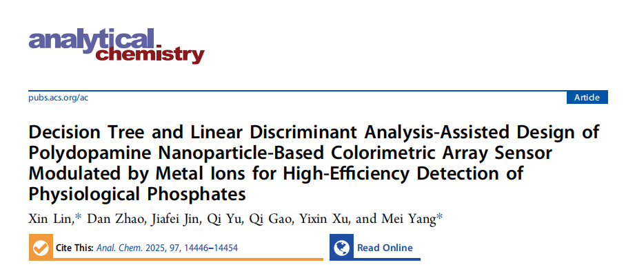 论文信息:Decision Tree and Linear Discriminant Analysis-Assisted Design of Polydopamine Nanoparticle-Based Colorimetric Array Sensor Modulated by Metal Ions for High-Efficiency Detection of Physiological Phosphates.